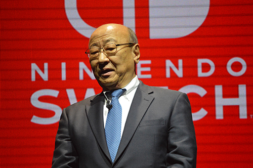 就任から初めて発売する新型ゲーム機となる「Switch」について、君島達己取締役社長は「据え置き型と携帯型がスイッチするゲーム機が、まったく新しい体験をみなさんにお届けします」と説明。「3月3日の発売を楽しみにしていてほしい」とユーザーにメッセージを送った。