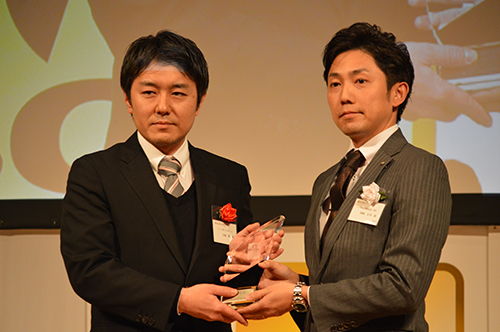 新設のドライブレコーダー部門を受賞したユピテルのマーケティング部 石橋篤ゼネラルマネージャー(左)