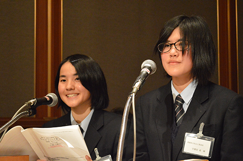 「BCN ITジュニア賞 2017」では、4チームと個人4人の計22人に、それぞれ賞状とトロフィーが授与された。今年は司会も受賞校の生徒から選出。「全国高校生プログラミングコンテスト」で優勝した愛媛県立松山工業高校の放送部に所属する宇都宮遥さんと厚朴里音さんの2人が進行した。