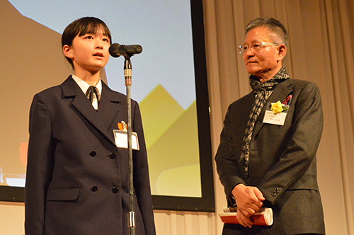 また、特別招待として、「U-16プログラミングコンテスト」旭川大会で優勝した下村恵子さんがビデオで、同コンテストの松山大会で優勝した金島綾さんが会場で、それぞれメッセージを語った。
