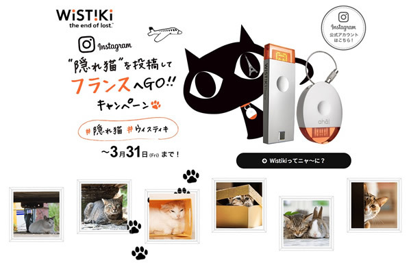 「Wistiki」の日本での発売を記念し、3月31日まで、「“隠れ猫”を投稿してフランスへGO!!キャンペーン」をInstagram上で実施する。
