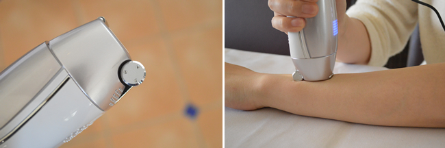 トリートメントの所要時間の目安は、ひじ下・ひじ上を合わせた両腕で約31秒、ひざ下・ひざ上を合わせた両脚で約128秒、両わきで約11秒など。家庭用光美容器としては圧倒的な速さだ。