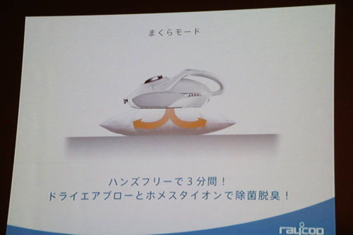 「まくらモード」は、除菌・脱臭効果のある独自開発の新技術「ホメスタイオン」と、水分を取り除く温風機能「ドライエアブロー」を組み合わせ、まくらケアに特化した機能で、99%の除菌・90%以上の脱臭率を実現した。一方、「自動モード」は、寝具の通気性を自動で検知し、寝具に合わせた最適なケアができる。