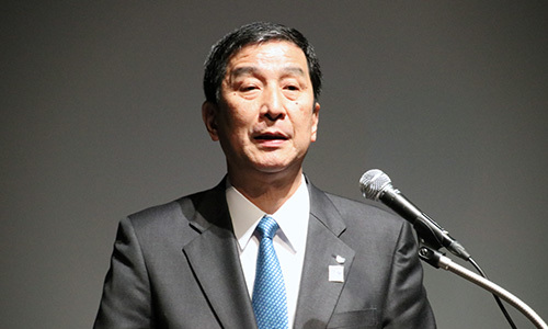 キヤノンマーケティングジャパン(MJ)の本社ビルで開催された発表会で、キヤノンMJの坂田正弘代表取締役社長は「キヤノンにしかできないことで市場を盛り上げていきたい」と意気込み、「2016年のレンズ交換式デジタルカメラ市場は苦しかったので、17年は少しでも成長させたい」と話した。