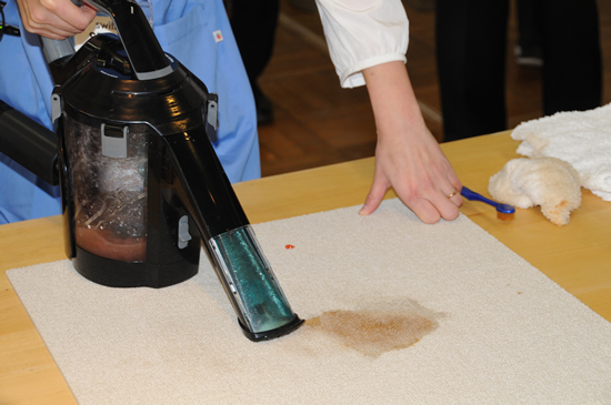 じゅうたんにこぼしたソースを水の力だけでキレイにするクリーナ用アタッチメント「スイトル」