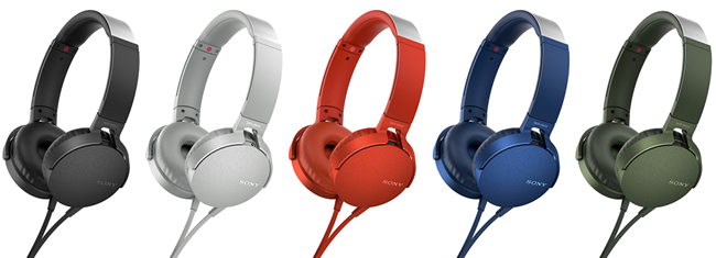 「MDR-XB550AP」は、中学生から高校生向けのカラフルな有線モデルで、スマートフォン用のリモコンがケーブルについており、ハンズフリーでの通話や、音楽の再生/停止などの操作が可能。カラーはグリーン、ブラック、グレイッシュホワイト、ブルー、レッドの5色。