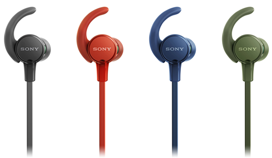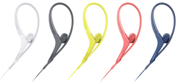 「MDR-AS410AP」と「MDR-AS210」は防滴仕様のスポーツ向けモデル。ケーブルにスマホ用のリモコンが付属する「MDR-AS410AP」は、スポーツ用品のトレンドに合わせたホワイト、ブラック、イエロー、ピンク、ブルーの5色で展開。「MDR-AS210」のカラーは、ブラック、ピンク、ブルーの3色。