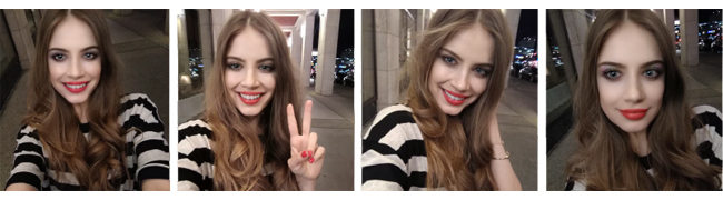 プレビューで見ながら選べる「メークアップ」モード(左から、スウィート、キュート、ナチュラル、パーティー)