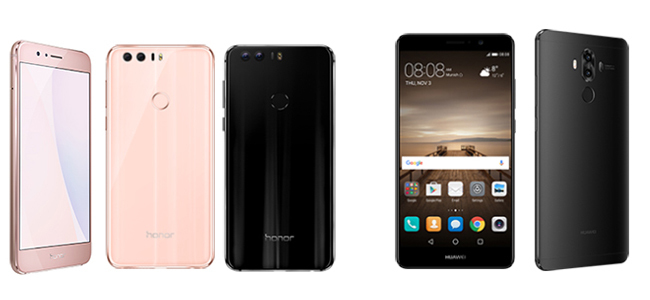 「honor 8」の新色「サクラピンク」「ミッドナイトブラック」と、「HUAWEI Mate 9」の新色「ブラック」