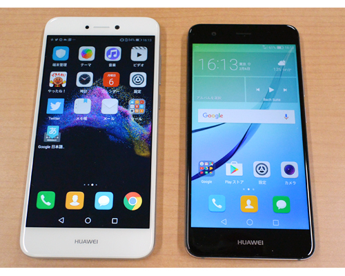 novaシリーズの2機種を比較。「HUAWEI nova lite」(左)のほうが若干大きい