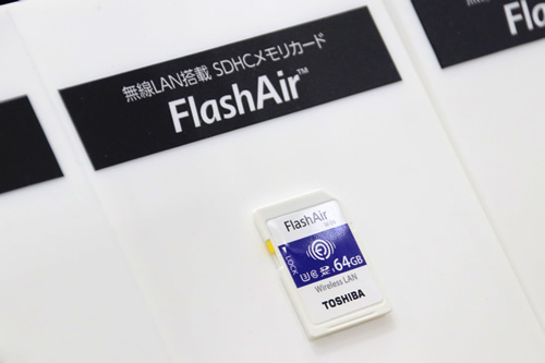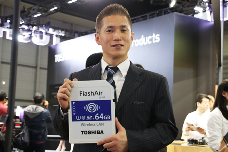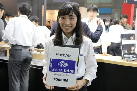 横浜市のパシフィコ横浜で2月26日まで開催する総合的カメラ映像ショー「CP+2017」に出展する東芝は、UHS-II対応SDメモリカード「SDXU-Cシリーズ」のほか、無線LANを内蔵したSDメモリカード「FlashAir」の新製品「SD-UWAシリーズ(W-04)」を参考展示し、自社製品の強みをアピールした。