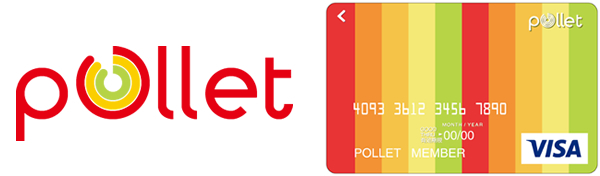 「ポレット」のロゴ(左)と共通カード「Pollet Visa Prepaid」