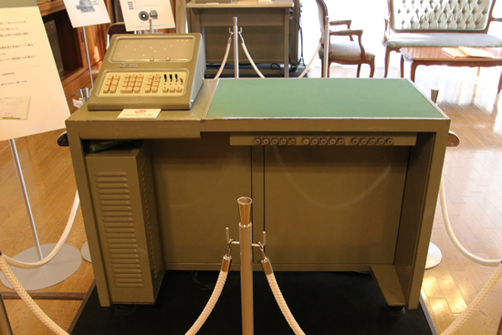 このほか、世界初の小型純電気計算機「14-A」や、電卓、時計、電子楽器などの発明品を陳列。同時に、発売当時のCMや新聞広告も展示している。