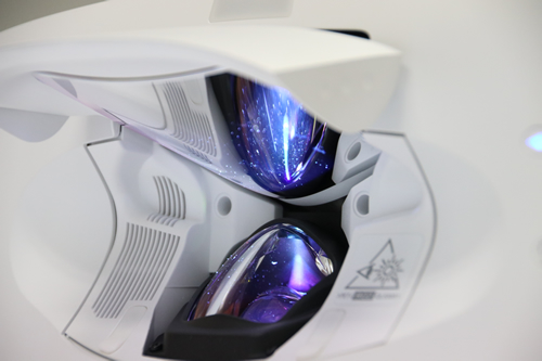 この超短投写で大画面を可能にするのが、ふたを開けると現れるレンズと、ふたの裏についている鏡だ。よく見ると大きく湾曲しており、発光と反射の角度を調整している。綿密に計算された独特な設計が、小型・超短投写・大画面を実現した。