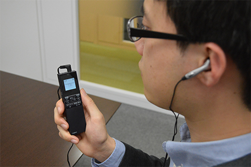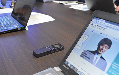 ビジネスシーンでも活躍。高感度に設定することで、複数人の音声も明瞭に記録できる