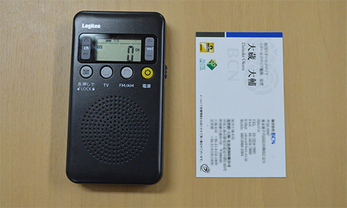 名刺サイズとコンパクトながら、AM放送なら33時間、FM放送なら19時間、テレビ放送なら24時間と長時間の連続再生が可能な点も安心だ。本体と一体になった自立スタンドを使えば、広範囲に音を届けることもできる。