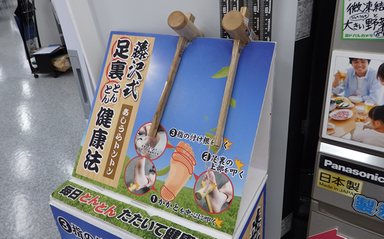 ヨドバシカメラの旗艦店「マルチメディアAkiba」の5階にある白物家電フロアの商談コーナーの脇に、同社の藤沢昭和社長の顧客への気遣いが感じられる「商品」がさりげなく展示されている。それが浅野木工所製の芯ナシ木槌、「あしうらトントン」だ。