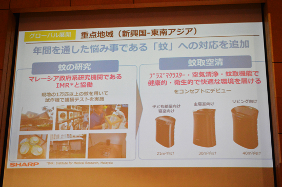 増加の要因は、地域特性に合わせてローカライズしたモデルの拡充だ。「プラズマクラスター搭載製品の主軸である空気清浄機は、大気汚染や蚊を媒介する感染症など、地域ごとの問題に焦点を当て、製品開発を行っている。日本でも16年夏に話題になった『蚊取空清』は、もともと東南アジアで先行販売していた製品。反響が大きく、現在は部屋別に3機種をラインアップするなど、成長を続けている」と中島氏は例を挙げた。