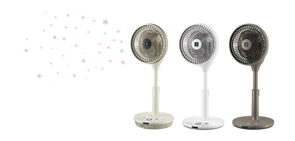 ハイポジション・リビングファンで、コードレスモードを備えた「PJ-G3DG」は3万1000円前後、「PJ-G3DS」は2万6000円前後の見込み。ACモーター駆動のリビングファン「PJ-G3AS」はホワイト、ブルー、ピンクの3色で、税別実勢価格は1万3000円前後の見込み。