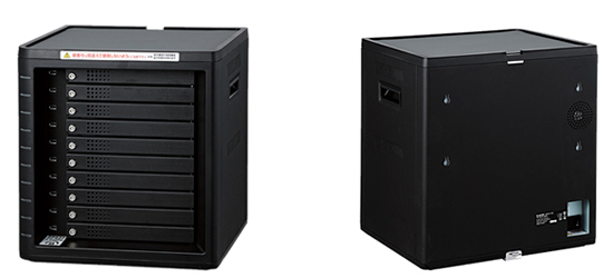 エレコムは、最大10台までのiPadやタブレットPCを個別に施錠して保管できるタブレット用保管庫「TB-SBAC10BKS」を4月中旬に発売する。カラーはブラック。税別価格は13万9000円。