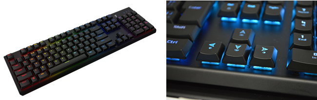 各キーはフローティング構造になっており、キー側面からイルミネーションが鮮やかに発光する。Nキーロールオーバー対応で、最大6キー同時押しに対応。ケーブルは着脱可能で、持ち運びにも便利だ。32ビットのARM Cortexプロセッサと512KBのオンボードメモリが、快適なゲーム操作に貢献する。