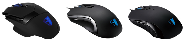 マウスは、人間工学に基づいてデザインしたゲーミングモデルを3機種ラインアップ。いずれも高耐久のオムロン社製スイッチ、32ビットARM Cortexプロセッサ、512KBオンボードメモリを搭載する。
