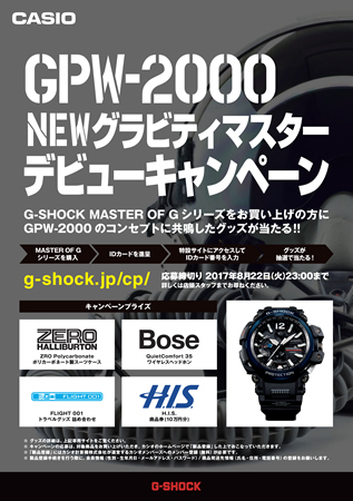 発売にあわせ、「GPW-2000」のコンセプトに共鳴したグッズが抽選で当たる「GPW-2000 NEWグラビティマスター デビューキャンペーン」を実施する。