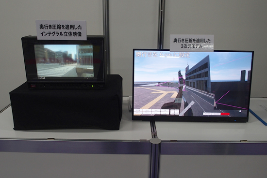 インテグラル立体テレビの試作機(左)。奥行きを計算することでリアルな立体映像をめざす