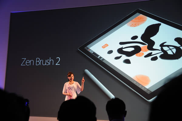 「心書家」の岸本亜泉さんによる4069段階の筆圧感知や傾き検知機能を表現するデモも実施