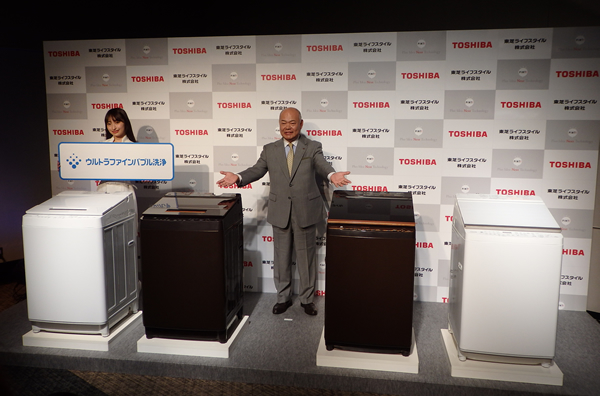 東芝ライフスタイルは5月30日、業界初の人間の目に見えない1μm(マイクロメートル)未満の超微細な「ウルトラファインバブル洗浄」機能を搭載した縦型洗濯乾燥機「ZABOON(ザブーン) AW-10SV6/AW-9SV6」を7月上旬に発売すると発表した。