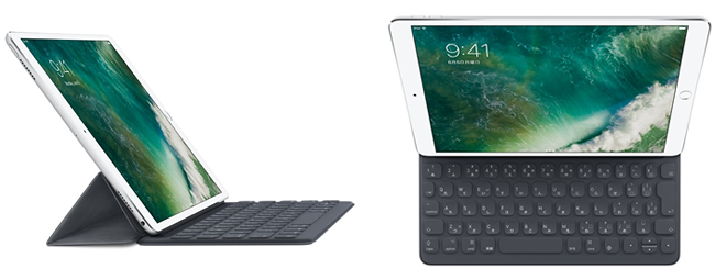 別売の「Apple Pencil」は1万800円、カバーを兼ねたフルサイズのキーボード「Smart Keyboard」は12.9インチiPad Pro用が1万8800円、10.9インチiPad Pro用は1万7800円。「Smart Keyboard」は、ペアリング不要で取りつけるだけでタイピング可能で、新たに日本語JIS配列モデルも用意した。