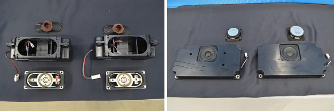 スピーカーユニットとサブウーハーの内部構造の比較(左:US40ライン、右:US45ライン)