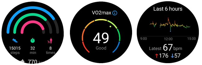 例えば、ランニングでは、計算されたトレーニング計画に基づいて距離、目標完了ステータスなどをガイダンスし、減速や加速などをリアルタイムにコーチする。VO2max(最大酸素摂取量)を測定してトレーニング効果を解析する機能もあり、モチベーションの維持に役立つ。運動だけではなく、日常の活動も視覚化でき、効率的に健康管理できる。
