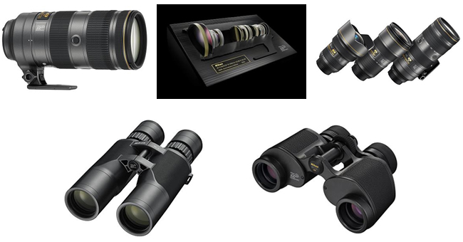 100周年記念のレンズは、鏡筒内のレンズ構成のグラスエレメンツ(展示台、展示用ケース付き)が付属する大口径望遠ズームレンズ「AF-S NIKKOR 70-200mm f/2.8E FL ED VR」、共通のシリアルナンバーなどが入った特別仕様の広角・標準・望遠ズームレンズの3本セット「NIKKOR F2.8ズーム トリプルレンズセット」の2機種、双眼鏡は「WX 7x50 IF」「WX 10x50 IF」「8x30 EII」の3機種。