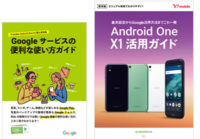 店頭購入者には、活用法や設定方法などがわかる2冊のガイドブック「Google サービスの便利な使い方ガイド」「Android One X1 活用ガイド」をプレゼントする。
