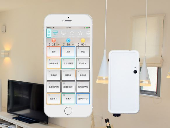 本体には温度、湿度、照度センサを搭載し、外出先からインターネット経由で室内環境の把握が可能で、あらかじめ設定した温度や時間になった場合に、メールでの通知やリモコン制御ができる。