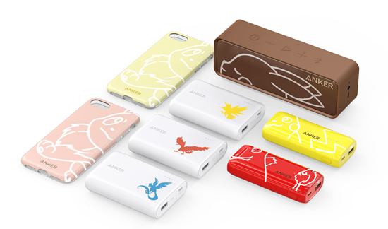 Ankerの日本法人アンカー・ジャパンは、『ポケットモンスター』のデザインを使用し、オリジナルデザインの製品パッケージを採用したモバイルバッテリ5製品、Bluetoothスピーカー「Anker SoundCore ピカチュウ」、iPhone 7用ケース「Anker SlimShell イーブイ」を、7月17日にAmazon.co.jpと一部の家電量販店で発売した。また、発売を記念し、SNSとリアルイベントを組み合わせた「充電(チャージ)は冒険のパートナーだ!!」キャンペーンを実施する。