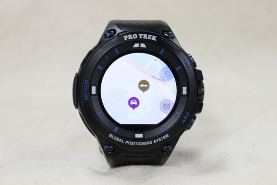「WSD-F20」は、防水性と耐環境性能を備えたアウトドア向けのリストデバイス「Smart Outdoor Watch」の第2弾。OSには、Android Wear 2.0を採用している。最も特徴的なのは、オフライン環境でも地図で現在地がわかる点だ。事前に行先の地図をダウンロードしておくと、スマートフォンの電波が届かない環境でも、内蔵のGPSと組み合わせて自分の位置を知ることができる。地図は、世界中の地図を提供するMapboxの地図データを使用する。