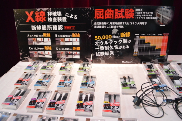 オウルテックは7月26日、5万回以上の折り曲げ試験に合格した業界一タフをうたう「超タフストロングケーブル」シリーズを発表した。AC充電器にケーブルがついたタイプと急速充電+データ転送ケーブル単体の計6シリーズを 8月中旬に発売する。