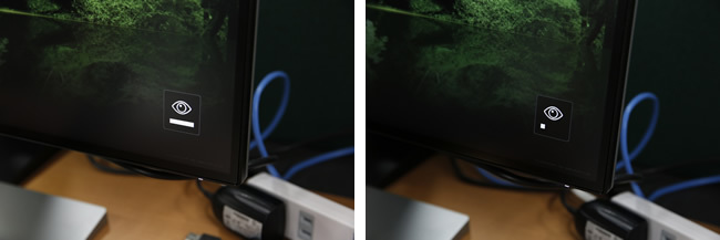 下の白いゲージが明るさを表す(左:暗い時、右:明るい時)