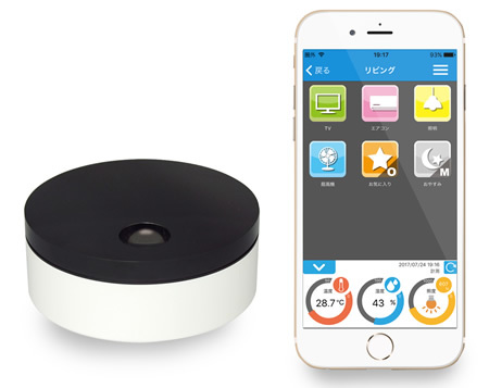 スマートフォンにインストールした専用アプリ「スマート家電コントローラ」上のリモコン画面をタップすると、無線LANルータを経由して本体に信号が届き、本体から赤外線に変換して出力することで、赤外線に対応した家電製品やAV機器を操作できる。