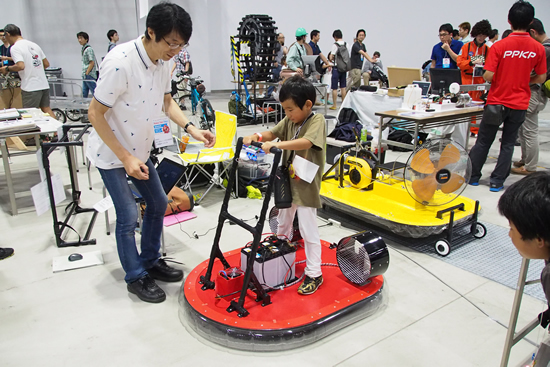 Maker Faire Tokyoは、特に子ども向けではなくても、子どもの心を刺激する展示や出展にあふれている。惑星探査に使われるようなロボットを興味津々に眺めたり超小型ホバークラフト体験ではしゃぐ子どもたち。こんなところからものづくりの楽しさに目覚めていくのだろう。