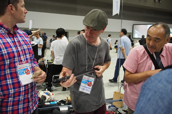 音系では楽器の出展も多い。演奏しながらその場で販売していたのがSlaperoo Percussionが出展した「スラップスティック」だ。エレキギター風の楽器だが、形状は一本の棒。弦の代りに薄い金属製の板を抑えつつ叩いて演奏する。エレキベース風の音で、うまく弾けるとなかなカッコいい。興味を持った来場者が次々と購入していた。