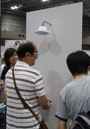 「拍手をあびるシャワー」。ハンドルをひねると頭上から拍手が降ってくる