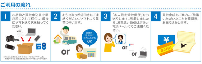 消費者は不要となったノートPCを、キットを使って送る際、箱の余った空間に使わなくなったスマートフォンやデジタルカメラといった、ソフマップの買い取り対象商品を一緒に梱包して送ることもできる。