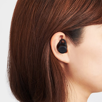 左右のヘッドホンをつなぐケーブルがない、完全ワイヤレスなヘッドホン。遮音性が高く、耳にフィットする耳栓タイプで、内部構造を完全な左右対称とすることで左右の音響条件を統一。左右の差異がなくなり、本来の広がりのあるステレオサウンドを再生する。本体にはマイクを備え、通話も行える。