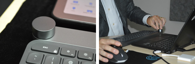 最大の特徴はキーボード左上部に搭載した「CROWN(クラウン)」と呼ばれるクリエイティブ入力ダイヤルだ。ダイヤルを回す方向や回転速度で、クリエイティブ系やオフィス系など、10種類以上の対応ソフトを操作することができる。