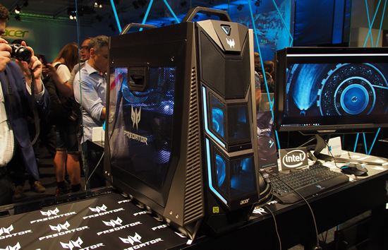 Chen CEOのテンションが最も高まったのが新しいゲーミングPCだ。なかでもデスクトップの「PREDATOR ORION 9000」は、最上位の「Skylake-X」CPU、Core i9-7980XE Extreme Edition(18コア)を搭載。グラフィックスカードにAMDの「Radeon RX Vega 64」を最大4枚搭載できるなど超ド級のスペックを誇る。間もなく訪れる8K表示にも対応できる最上級のゲーミングマシンだ。