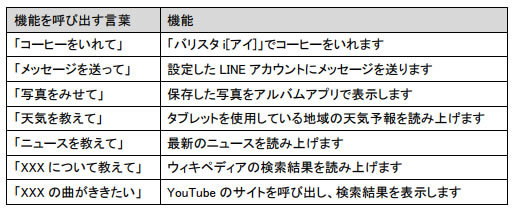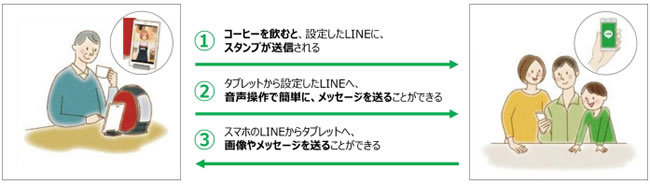 自宅に「バリスタ i[アイ]」とタブレットをセットし、タブレットの画面上に表示される「エージェント」に話しかけると、コーヒーを淹れたり、離れて暮らす家族とLINEでメッセージを送受信したりできる。タブレットでの情報検索などは、すべて音声で行うことができ、スマートフォンなどを所有していない高齢者でも利用しやすくした。