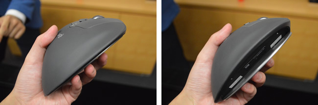 最大のこだわりは、通常のマウスと比較して筋緊張を20%軽減するという快適性だ。人間の手が最もリラックスできる手の姿勢を研究した結果、辿りついたという“握手”のポジションを再現するため、ヒンジに20°の傾斜をつけ、手のひら全体に力が分散するようにした。